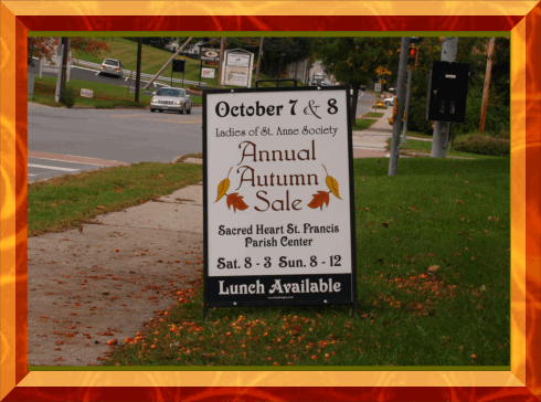 A-frame signs for The Ladies of St. Anne Society's Annual Autumn Sale. |